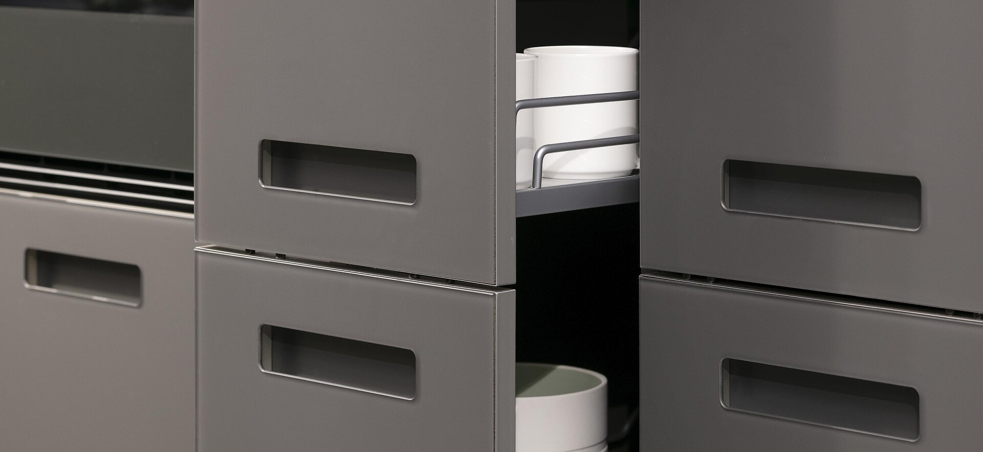 Smartglas-Fronten bestechen vor allem bei grifflosen Küchenfronten durch ihre hochwertige Optik, Stabilität und auch Pflegeleichtigkeit. Seine Anti-Finger-Print-Eigenschaft reduziert Fingerabdrücke und verringert dadurch den Reinigungsaufwand. In matter Ausführung schafft das samtige Design Wohlfühlatmosphäre und fasst sich wunderbar an.
