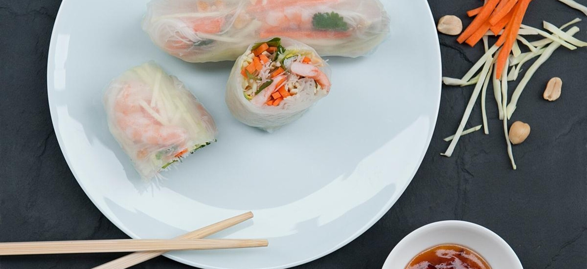Kennen Sie vietnamesische Sommerrollen? Frisch, gesund, fettarm, wahrhaft ein leichtes Gericht: Die in schmale Streifen geschnittenen Zutaten (gegartes Fleisch oder Fisch und rohes Gemüse) werden in eingeweichtes Reispapier eingewickelt, in einen Dip getaucht und direkt verzehrt. So einfach!
